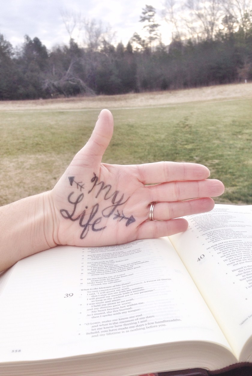 I cannot tell you how mush a LOVE LOVE LOVE verses 5 & 6. I love them so much, I had to write a reminder on my hand about how short my life is. (A hand model, I am NOT, but I loved this illustration.) Life is so short, isn’t it?